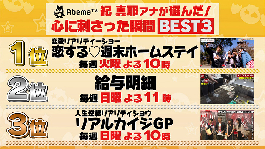 AbemaTVレギュラー番組の中から紀真耶アナウンサーが厳選した3番組をご紹介!
