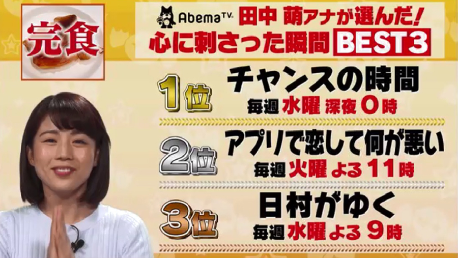 AbemaTV連動企画「心に刺さった瞬間 ランキング」
