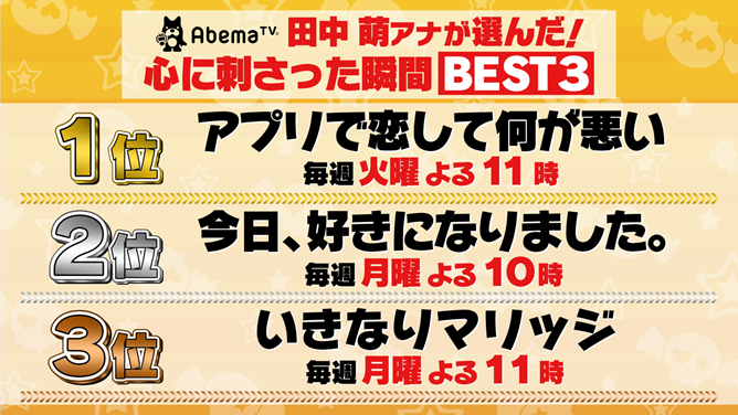 AbemaTVレギュラー番組の中から田中萌アナウンサーが厳選した番組をご紹介!
