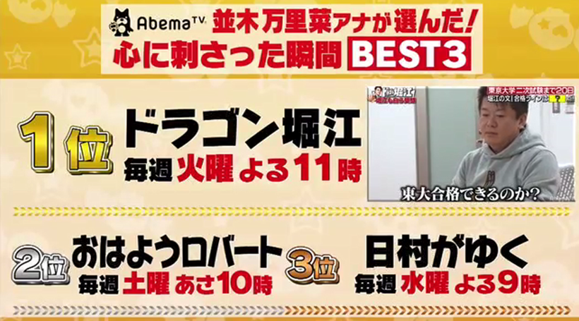 AbemaTV連動企画「心に刺さった瞬間 ランキング」