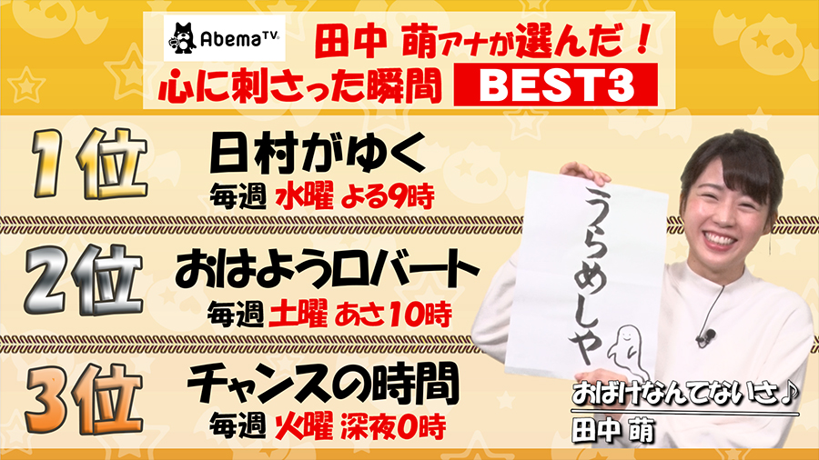 AbemaTVレギュラー番組の中から田中萌アナウンサーが作品をご紹介!