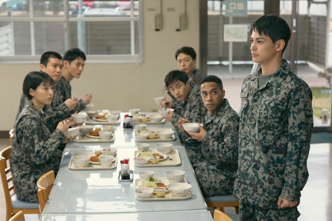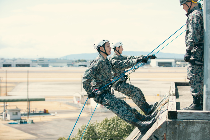 7人が緊張の面持ちで、教育隊長・堀越正一(宍戸開)の訓示に耳を傾けていると、突然ヘリコプターの音が近づいてくる。驚いた7人と仁科蓮(濱田岳)ら教官たちが空を見上げると、救難ヘリコプター・UH-60Jがホバリングを始める。すると、ドアが開き、主任教官・宇佐美誠司(内野聖陽)が降下してくる…!