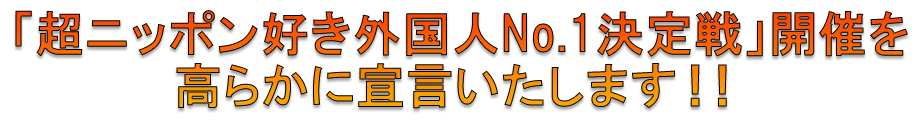 世界には「日本」をこよなく愛する「外国人」が沢山存在し、 「日本が好きすぎて来日した」外国人も―― 彼らは、様々な日本文化に精通し、 我々日本人よりも日本を熟知しているのです。 そこで!世界各国出身の選りすぐりの 超日本好き外国人を集め、 “日本に超詳しい外国人たちの凄さっぷり”を見せる・・・ 『お城』、『寿司』、『ラーメン』、『日本酒』など… 「日本のある分野」の知識に長けた、 日本を愛して止まない外国人たちが出演! 外国人が得意なテーマでクイズを出題! それぞれが連続正解数を競い、 最後に【MVP】を決定します。
