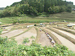 菅さんご夫婦が菅地区と関わるきっかけになった棚田オーナー制度の田植えが行われました。今年で米作り13年目のご夫婦。