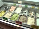「ジェラートみるく畑」には、年間を通して50種類以上のジェラートレシピがあり、そのうち毎日13種類が店頭に並びます。その日に何を作るかを決めるのは、接客担当の伊津子さん。旬や流行を考え、勁さんに指示を出し美味しいジェラートが出来る・・・いいコンビですね。この日も、伊津子さんからオーダーされた13種類のジェラートが店頭に並びました。