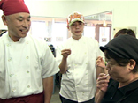 ブルーベリー生産農家、藤谷君代さんの畑で、収穫の手伝いをした大場さんご夫婦。帰りがけに実ったキュウリを見つけ、藤谷さんがキュウリをジェラートにしたらきっと美味しいとひと言。勁さんのジェラート魂に火がついたようです。淡白な味のキュウリは美味しくないと思っていた勁さん。ジェラート作りの試行錯誤が始まりました。
