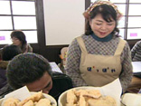 中貝家の夕食では唐揚げの試食が行われています。実はこの唐揚げの中身は、おから入りのコンニャク。『ぽっぽや』で出すメニューを、まずは家族に試食してもらいます。家族にOKをもらい「なんちゃってからあげ」と名付けた新メニュー。『ぽっぽや』でも好評でした。身近で手に入る食材に一工夫する手料理には、主婦のアイデアが詰まっています。