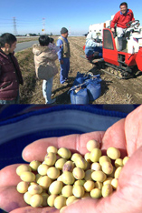 在来種大豆を生産しているのが農家の鈴木一司さんと正司さん兄弟。在来種大豆は育てるのも刈り取るのも手間がかかるそうです。それでも鈴木さんが在来種大豆にこだわるのは甘くて美味しいから。この日収穫した大豆は一週間ほど乾燥させて、宏幸さんの手で美味しい豆腐に生まれ変わります。
