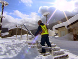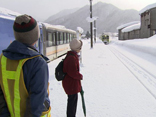 冬の時期、比立内駅での大穂さんの大切な仕事がホームの雪かき。乗り降りするお客さんが安全に歩けるようにと黙々とこなします。雪が多い今年は、一日作業に追われることも多いそうです。そんな作業の合間に一瞬、太陽が顔を出すと比立内駅はキラキラとした銀世界に・・・この太陽は何にも変えがたいご褒美だそうです。