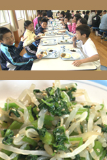 松阪市内4つの小中学校の給食で京子さんが育てたクレソンが使われています。この日の献立は「クレソンのごまあえ」。クレソンはゆでてもシャキシャキ感が残るのが特徴です。子どもたちも「ちょっと苦くておいしい!」とクレソンが大好き。京子さんが育てるクレソンは飯高町の子どもたちに親しまれています。