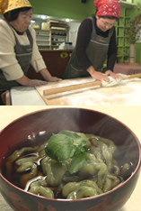 日々、京子さんはクレソン料理のレパートリーを増やそうとアイデアを練っています。挑戦したのはクレソンうどん。以前作ったときはクレソンの粉末を生地に混ぜてみました。今回はより香りを立たせるために、粉末に加えクレソンのみじん切りを入れてみました。うどん作りを習ったことがある京子さん。その腕前は本格的です。ほんのりクレソンの香りが漂う緑色の麺。コシもあるクレソンうどんが出来上がりました。