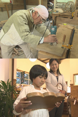 茂コさんが作るのは「心とからだにやさしい木工」。木の表面を塗装せず、自然な風合いを大事にしています。釘や接着剤も使いません。この日は、お客さんから注文を受けていた、パン用のカッティングボードが完成しました。丹念に磨きをかけ、蜜ろうを塗った表面は、見る角度によって色が変わる自信作です。注文をした桑原さん親子にも笑顔がこぼれています。丹精込めて仕上げたカッティングボード、喜んでもらえました。