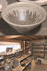 雅子さんが陶芸を作る「夢創窯(むそうがま)」は、自宅の横にあります。中では、陶芸歴20数年の雅子さんと、まだ初心者の健一さんが陶器を作っています。ひとつひとつ、より良い出来になるように二人とも細心の注意を払って作っています。まだろくろを巧みに扱えない健一さんは、独り立ちに向けて練習中です。