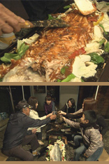 旭川市に住む娘と孫を呼び、釣ったサケを半身使って、ちゃんちゃん焼きパーティーを開きました。孫たちが美味しそうに食べる姿を見て、健一さんも満足そうです。雅子さんとは、お互い子どもを連れた再婚同士で、温かい家族を築いています。