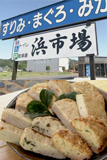 津久見市で育った進さんは、小アジのすり身天ぷらを作っている飲食店が、後継者を探していることを知り、名乗りを上げました。そして、印刷業から転職した髙木浩さんと二人で今年6月「浜市場」をオープン。すり身天ぷらを中心に地元の加工品や野菜などを並べ、多くの客が来店しています。