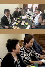 師匠や地元の料理人を呼んで、まぐろすり身天ぷらの試食会が行われました。皆、山椒入りのマグロ天ぷらにご満悦の様子です。さらに、師匠の加茂紀代子さんが「アジの天ぷらより美味しいかも」と、太鼓判。商品化に向けて大きな一歩になりました。