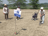 益美さんは今年から体力作りのために地元のグラウンドゴルフクラブに入会しました。週2回、仲間と一緒に汗を流してグラウンドゴルフを楽しんでいます。この日は地元の名物おじいちゃん、石井守治さんが飛び入りで参加しました。なんと御年100歳!力強いフォームから正確にコントロールされた球を打ち出します。年齢に関係なく地元の方々と交流の輪が広がっています。