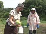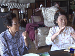 いつも野菜を分けてくれる本田満子さんと渡辺悦子さんを自宅に招待しました。ふたりのために自家菜園で収穫したばかりのソラマメを使った新作のパスタを作りました。渡辺悦子さんはこの古民家にかつて住んでいました。古くなった思い出の家を修復し、よみがえらせた益美さんと有利子さんに「拝むくらいだ」と感謝しています。