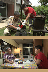 ミニSLは自宅のホビールームで作ります。実際の蒸気機関車に比べて10分の1のミニSLを自ら設計し、材料を切り出し組み立てます。孫の拓夢君にSLの仕組みを教えながら、一緒に作業することもあります。夜は政二さんの手作り料理を食べて、拓夢君も嬉しそうです。