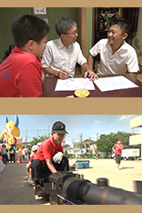 政二さん、長男の勉さん、孫の拓夢君の三世代で、ミニSLのイベントに出掛けます。交代で運転手を務め、地域の子どもたちを乗せて走ります。みんなミニSLに乗れて楽しそうです。政二さんにとって、そんな子どもたちの笑顔が力になっています。