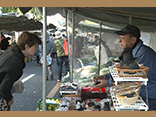 栄一さんは毎週、高知市で開催されている日曜市に出店しています。高知県の特産品が多く並ぶ中、ひときわ目を引くのは栄一さんの炭のオブジェ。初めてそれを見て驚くお客さんに、“待ってました!”と言わんばかりの笑顔で応対。お客さんが楽しむ様子が何よりもうれしい栄一さんです。