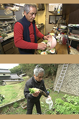 勢津子さんの夫・敏郎さんは、空調設備の仕事をしながら、妻と娘を陰でしっかりと支えています。仕事が早く終われば、台所で夕食の料理作り。庭では野菜を育て、割子そばの薬味に使う大根も育ててくれています。「古曽志そば」の縁の下の力持ち。優しくて頼りになるお父さんです。