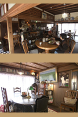 築100年を超える古民家を改装したカフェ、店の名前は「田(た)の神(かん)さぁ」。田畑に豊作をもたらす神さまから頂きました。店内は趣味で集めたアンティークの数々が並びます。和と洋が混然一体となったおしゃれな空間です。
