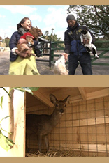 「田(た)の神(かん)さぁ」で出会える動物は、愛犬の“フー”と“ソラ”、古民家の縁の下から出てきた猫の“カイ”、そして2頭の馬“リク”と“ナミ”。さらに、最近新しい家族が加わりました。子鹿の“ゆきちゃん”です。山で罠にかかっていたのを地元の方が連れてきました。たくさんの動物たちとふれあえる癒しのカフェです。