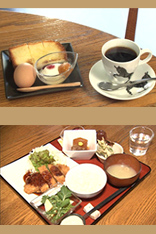カフェ「田(た)の神(かん)さぁ」の人気は、380円の名古屋風モーニングセットと、地元の食材を使った家庭的な定食メニューです。料理の担当は順子さん。近所の皆さんから頂く野菜で、その日のメニューを決めています。