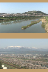 宮城県の南部に位置する、自然豊かな柴田郡柴田町。町の西には東北の名峰・蔵王連峰がそびえています。町の中心を流れる白石川沿いには、1000本を越えるソメイヨシノが咲き誇り、東北有数の桜の名所「一目千本桜」として知られています。船岡城址公園と白石川堤を結ぶ「しばた千桜橋(せんおうきょう)」の上は、桜と蔵王連峰を撮影しようとする多くの花見客で賑わっていました。