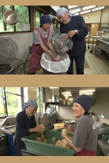 味噌に欠かせない麹も、田んぼで育てた米から作ります。移住したばかりの頃、味噌作りの経験がなかったお二人に、地元で暮らす永嶋さんが一から教えてくれました。次女の里ちゃんは、赤ちゃんの頃から、味噌作りを手伝いながら育ちました。今ではみなさん、慣れた手つきです。