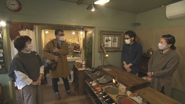 この日、ご夫婦は『澤口眼鏡舎』のショップカードを携えて川越市内へ。まず向かったのはオーダーメイドの靴屋さんです。お店の連絡先を記したショップカードをお互いの店に置いて、紹介し合っているんです。続いて向かったのは、木工家具職人・加藤さんの工房。イベントで眼鏡を展示するためのテーブルを作ってもらったり、愚痴をこぼし合ったり、亮さんの心強いお仲間です。小江戸・川越で、職人の輪がどんどん広がっています!