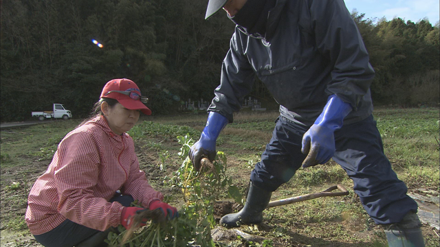 ご夫婦は、本当にたくさんの方々に支えられています。中でも、眞美子さんの親戚・入江さんには「Mふぁーむ」などで販売する野菜を作る畑を貸してもらっています。さらに入江さんの飼育している牛の堆肥ももらい、ご夫婦は頭が上がらないといいます。他にも、地域のみなさんに支えられて「Mふぁーむ」を営んでいます。