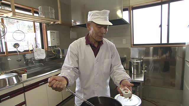 村上市の山間、大毎(おおごと)集落で生まれ育った専一さんは地元の消防署に勤務していました。28歳の時に美智子さんと結婚し3人の女の子が生まれます。専一さんは6年前、友人に勧められ初めてイタヤカエデの樹液を飲みました。その甘さに驚き、更に煮詰めるとメープルシロップになることを知ります。面白いと感じた専一さんは、早速、メープルシロップ作りに挑戦します。何度も失敗しましたがようやく1年後に、満足のいくメープルシロップが作れるようになりました。その後、消防署を早期退職、2012年10月に工房を構え、本格的にメープルシロップの製造販売を始めました。