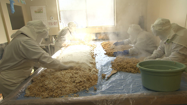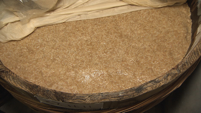妻の美智子さんは親戚の味噌屋さんで味噌作りのお手伝いをしています。注文のあった家毎に大豆、麹、塩の配合を変え、それぞれの家の味噌を手作りしています。昔は親類が集まり各々の家の味噌を皆で作っていたと言います。そんな「結(ゆい)」の精神が今も残る大毎集落です。