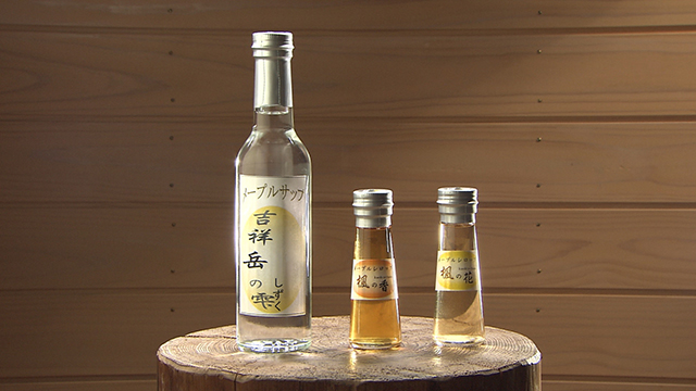 河面さんご夫婦が営む「てまひま工房・山専」では、イタヤカエデの樹液を煮詰め、糖度66度と43度の2種類のメープルシロップと、樹液を加熱処理したメープルサップを作っています。メープルサップは煮物料理などに入れると、ほんのり甘くコクが出ます。