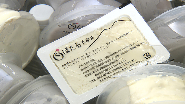 森さんご夫婦が営む「白ほたる豆腐店」。国産の大豆と天然にがりで作る「もめん豆腐」は大豆本来の風味と甘みが口に広がります。