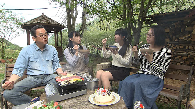 家族4人で南アルプス市へ移住した折口さん家族。長女・史帆さんと次女・美穂さんも芦安地区に馴染み、豊かな自然の中での暮らしを楽しんでいます。この日は、美穂さんの16歳のお誕生日。おいしいお肉と野菜、美穂さんの大好きなケーキを用意し、「らんたん」自慢のお庭でお祝いしました。