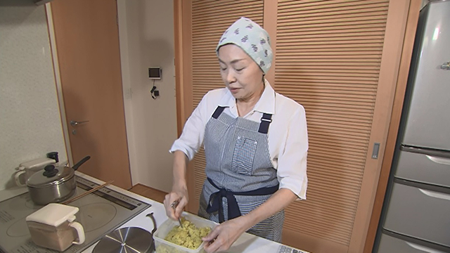畑で収穫したサツマイモを、スイートポテトパンの餡に加工します。じっくりと煮込んだ後、潰してペースト状にしていきます。甘くてしっとりとしたサツマイモは、モチモチとした食感のパンにマッチして大人気。他にも、イチジクやカボチャなど、季節の食材を使ったパンがお店に並びます。
