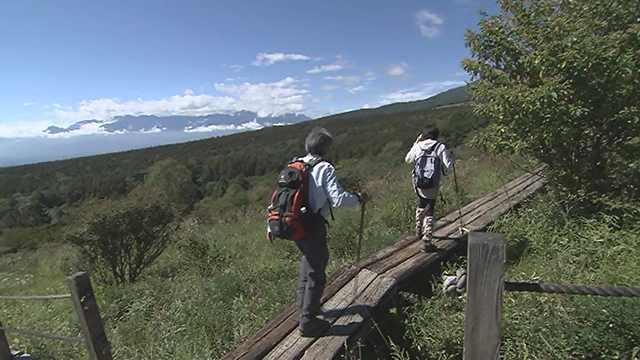「ろくぶんぎ」がお休みの日は、趣味の登山や自然散策に出かけることが多い紺清さん夫婦。この日は自宅から車で20分の『美し森』にやってきました。散策路を登っていくと南アルプスや富士山を眺めることができました。展望広場では、移り変わる雲を眺めながらのコーヒータイム。北杜市の自然を満喫できました。