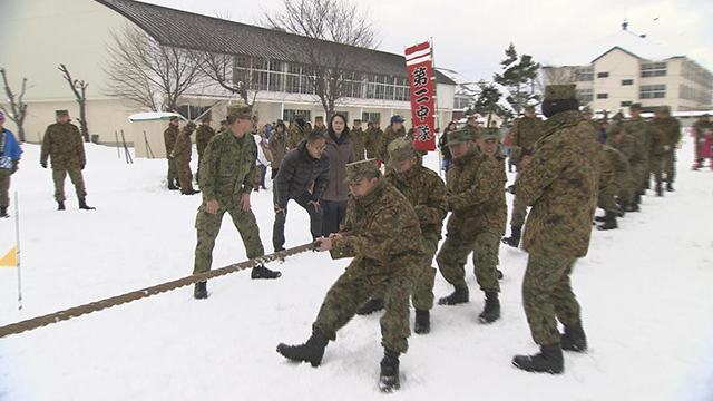 この日カフェは臨時休業。修二さんが去年まで務めていた自衛隊・滝川駐屯地で年に1度の恒例行事が行われていました。知江美さんと一緒にピザを持って訪問です。先輩の登場に後輩隊員の皆さんも温かく迎えてくれました。美味しいピザにみんな嬉しそう。外で行う雪上綱引きの応援をする修二さんは現役時代に戻ったようで、久しぶりの仲間たちとワイワイ楽しんでいました。