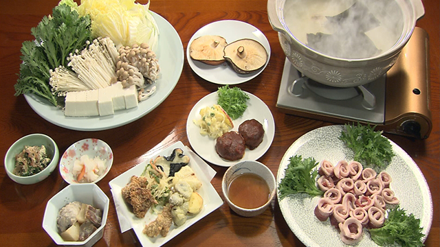 公代さんが作る田舎料理も宿の自慢です。自宅前の畑で育てた旬の野菜はもちろん、正雄さんが捕らえたイノシシ肉などを使ったオリジナルのジビエ料理を堪能できます。おすすめは自家製野菜とイノシシ肉のしゃぶしゃぶ。正雄さん自ら丁寧に加工処理しているイノシシ肉は、臭みがなく食べやすいとお客さんに大好評の看板メニューです。