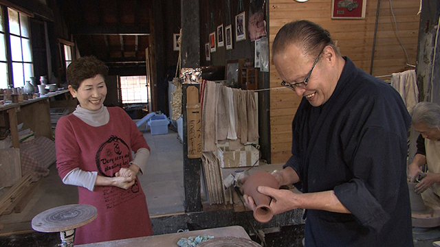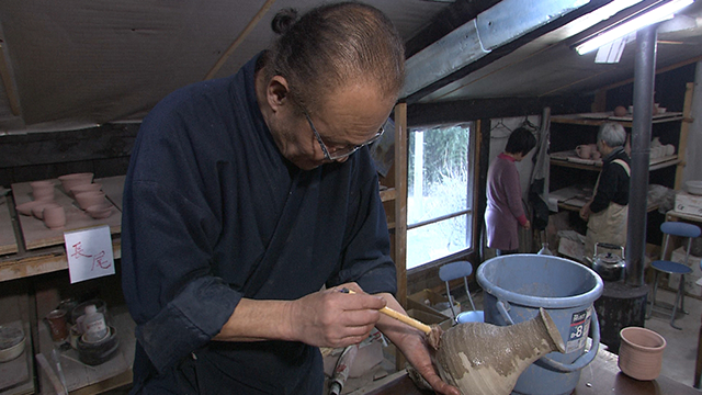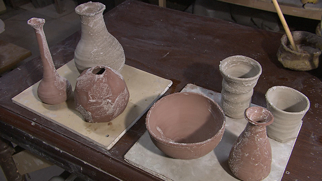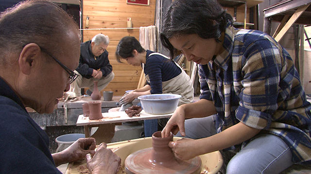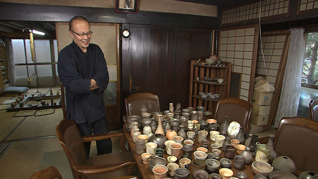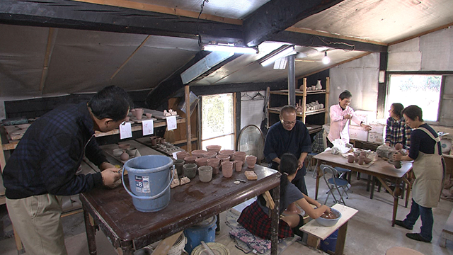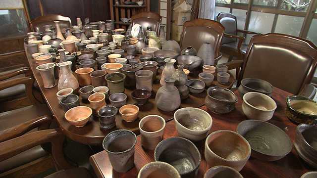 工房を始めて4年。廣行さんがこれまで作った作品は4千個を超えます。あくまで陶芸は趣味なので作品は溜まる一方ですが、たまに工房を覗きに来た人などにプレゼントしています。ロクロを設置した陶芸部屋は、かつて養蚕に使われていたという自宅の2階。今では陶芸を習いたいという人が集まるようになりました。体験料は、使った土代とロクロの使用料100円のみ。廣行さんの指導の元、色んな方が陶芸を楽しんでいます。