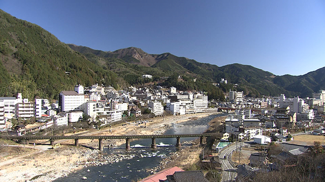 飛騨川沿いを中心に50軒余りの温泉宿が建ち並ぶ下呂温泉は、千年以上の歴史を誇ります。温泉街のあちらこちらには無料の足湯もあります。