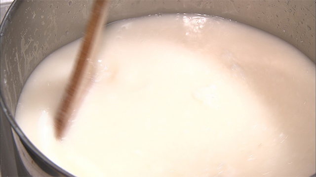 良夫さんは、できあがった麹を使ってどぶろくの仕込みを行います。炊いたお米に水と麹を足して1日寝かせ、「もろみ」をつくります。これに、酒米と井戸水、酵母を加え、毎日優しくかき混ぜ続けると、炭酸ガスが発生し、やがて40日から50日ほどで、良夫さん自慢のどぶろくが完成します。