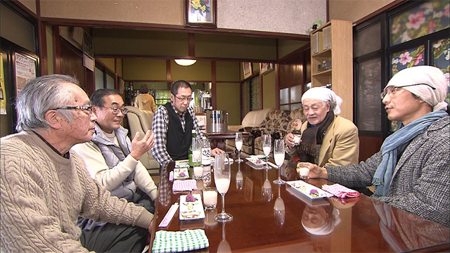 中能登町でもう一軒、どぶろくを造っている農家レストラン「まる」に集まった良夫さんと仲間たち。今後、どぶろくを造りたいと考えている、農家民宿を営む藤井さんと、去年、新規就農した松田さんが加わり、「太郎右衛門」と「まる」のどぶろくを、飲み比べます。将来的には、町でどぶろく祭りができるようになりたいと語る良夫さん。仲間たちと夢の実現に向けて、一歩ずつ進んでいきます。