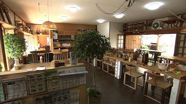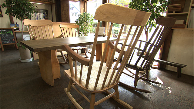 修史さんが作るのはカヌーだけではなく、カフェで使われている椅子や展示販売されている椅子も、修史さんの手作りです。これまで制作した椅子の数は、およそ400脚。店内に置ききれないので、カフェ横の建物に椅子を収納しています。