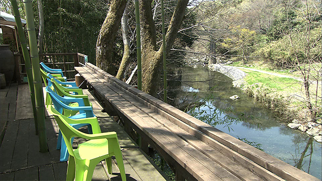 修史さんがときがわ町に単身移住したのは60歳の頃。カヌー遊びに丁度良い緩やかな流れの川がすぐの物件を見つけ、2007年「カフェギャラリー番匠」をオープンさせました。カフェのテラスの階段を下りると、修史さんの作ったカヌーに乗ることが出来ます。また、店内に並べられた椅子も修史さんの手作り。カヌーや椅子を作りながら、のんびり暮らすのが最高の幸せだと言います。