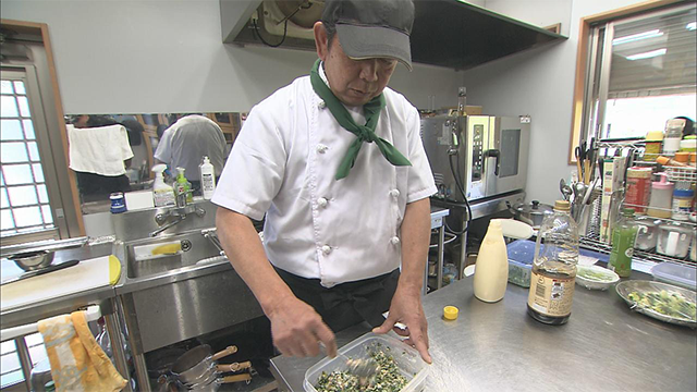 お二人が営むお店では、富子さんが接客、賢治さんが調理を担当しています。賢治さんは旬の野菜を存分に使い、野菜本来の甘味や苦味を大切にした優しい味付けにしています。まさに、“野菜ソムリエプロ”ならではのレストラン。訪れたお客様からは「新鮮な野菜が味わえる」「野菜の話を聞けるのがいい」と好評です。オープンからわずか1年4カ月で、沢山の常連のお客さんがやってきます。