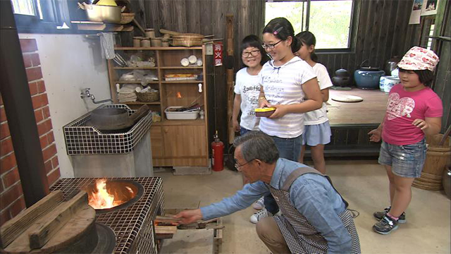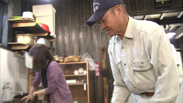 この日は週に1度のワークショップ。木工や竹細工の他に樹脂粘土やペーパークイリングも体験が出来ます。参加した子どもたちは思い思いの作品を作り楽しんでいました。この日を一番楽しみにしていたのが敏幸さんの父・章さん。農具や民具を眺め「ここに来れば、落ち着く」と一言。章さんも「のだけ村」が大好きです。